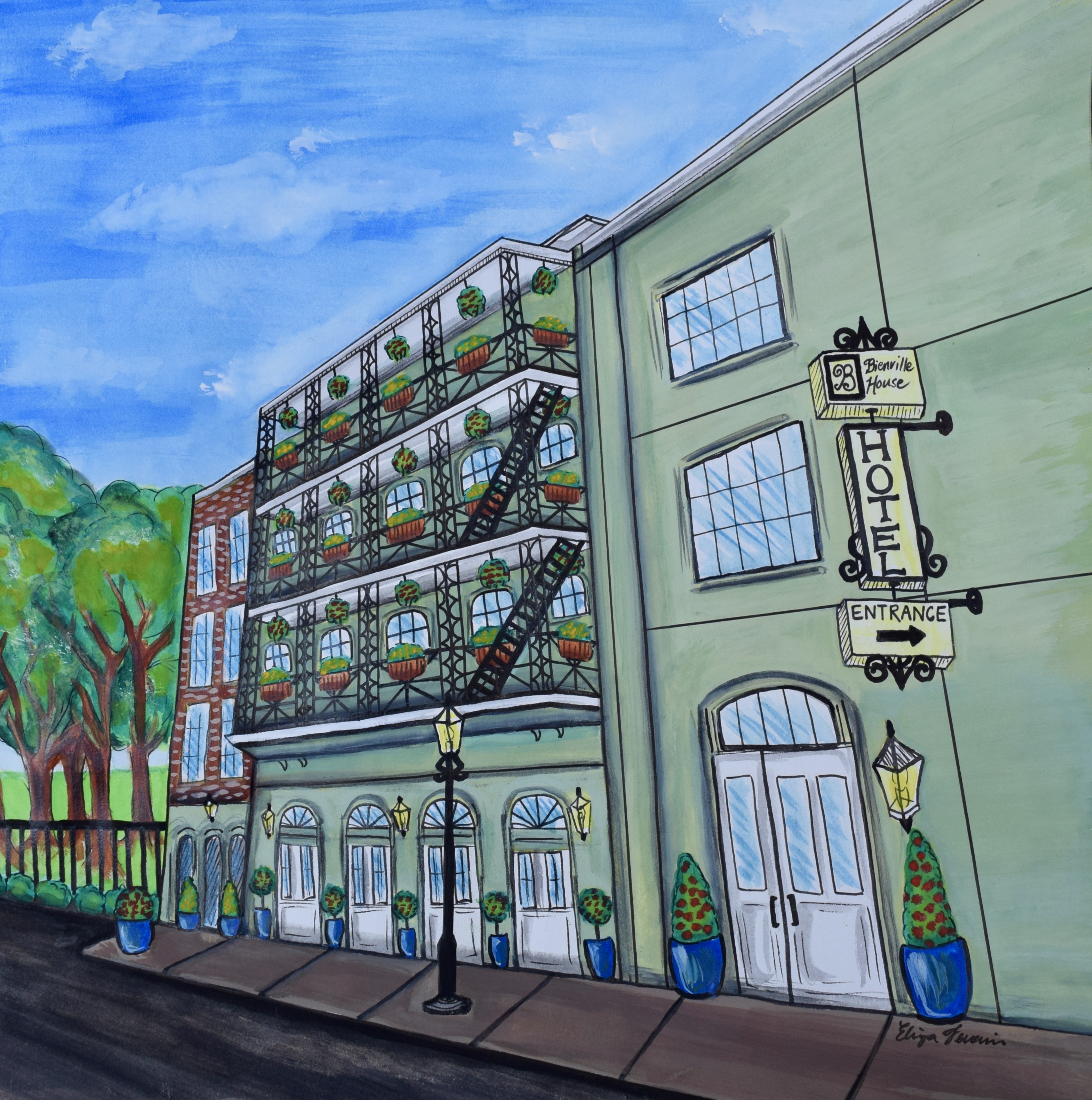 Kayla and I spotted this gorgeous historic hotel on our trip to New Orleans earlier in 2021 I snapped a photo while we were there and decided to recreate it using ink and watercolor.