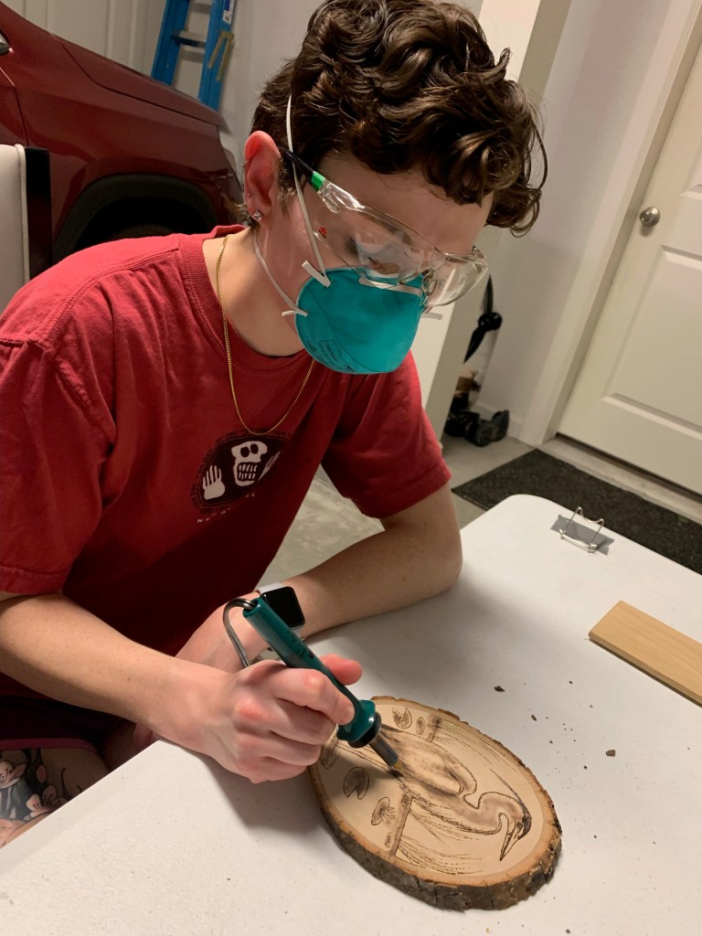 Latest wood burning art with an “in progress” shot! I am thinking of upgrading my cheap wood burning kit to a more professional one. Really loving this medium of art.